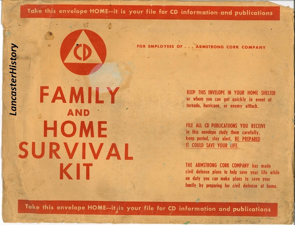 The letter included in the survival kit and signed by Armstrong Floor Plant Manager J.R. McCray included the following caution: “I certainly don’t want to scare anyone with these pamphlets or cause any undue concern or alarm. But I think we should recognize that here is a certain amount of tenseness in the world political situation and that anything we can do as individuals to add to our information and preparedness is to our own advantage.”