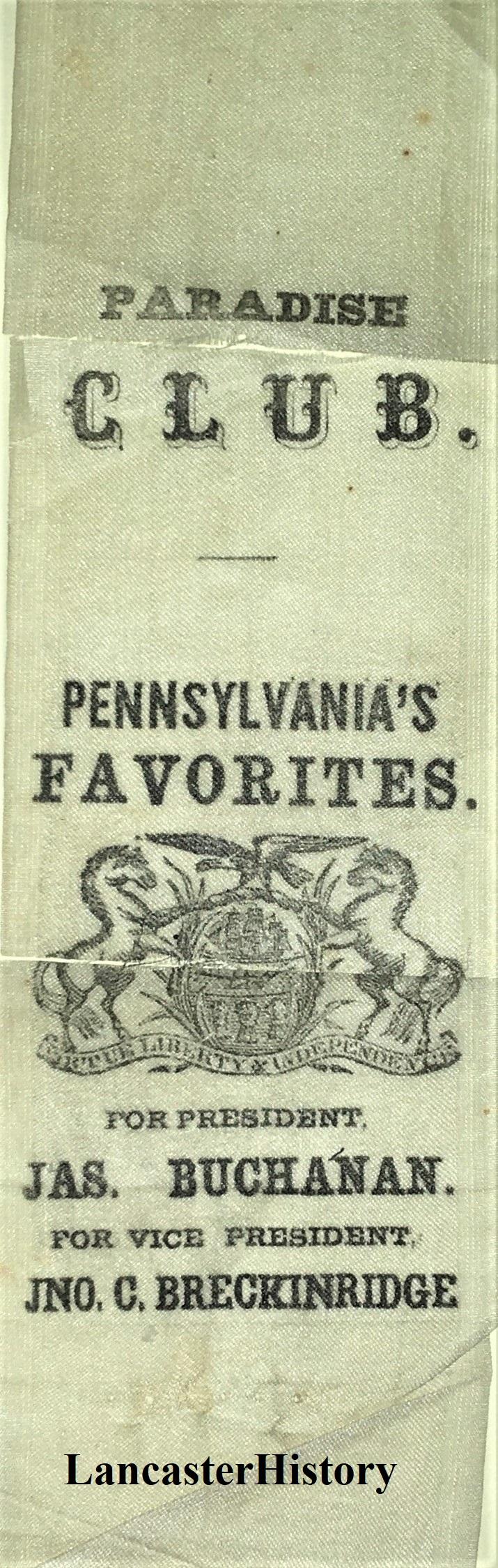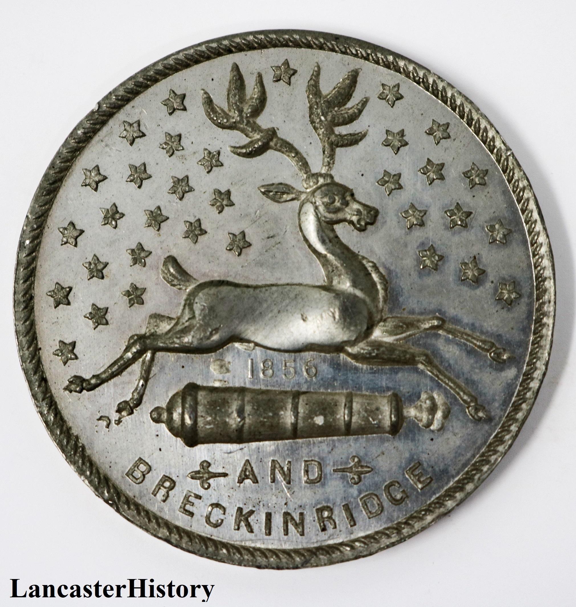 LancasterHistory recently acquired an 1856 James Buchanan presidential campaign medal. While some of the images and symbols on the medal are straightforward, others are not. Especially intriguing is the appearance of 32 stars on the back of the medal—at a time when there were only 31 states in the Union. Why 32 stars? The answer, it seems, lies in the contentious debates over slavery and popular sovereignty (allowing people in a territory to decide for themselves whether their territory would enter the Union a free or slave state) that began well before the election of 1856, but reached a feverish pitch in the years just before the outbreak of civil war only a few years later.