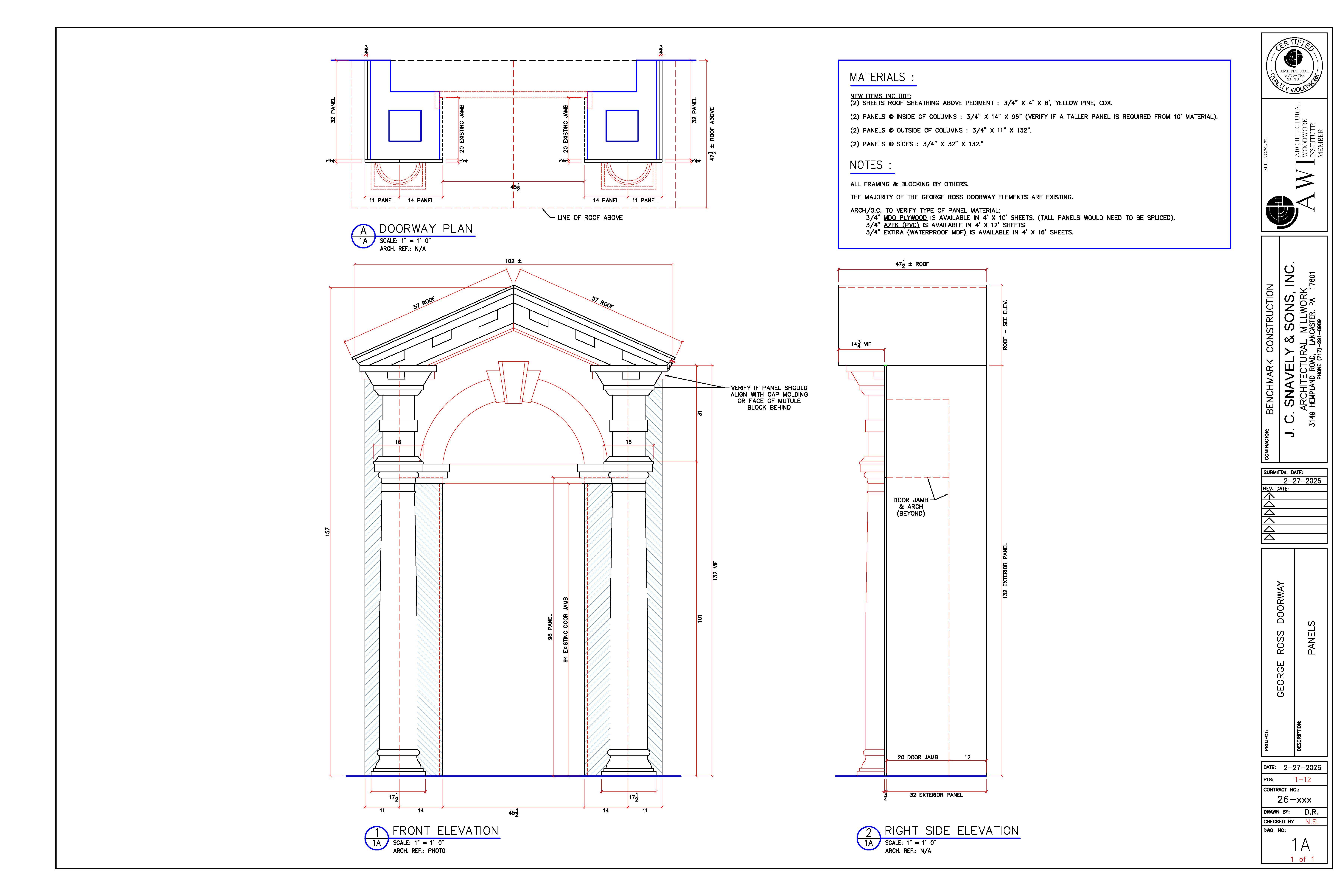The difficult task of reassembling the Ross doorframe for display at Historic Rock Ford was entrusted to local contractor Benchmark Construction. Local building materials supplier J.C. Snavely & Sons produced this scale drawing to aid Benchmark in making repairs, fabricating missing or damaged parts, and properly framing and aligning the finished product.