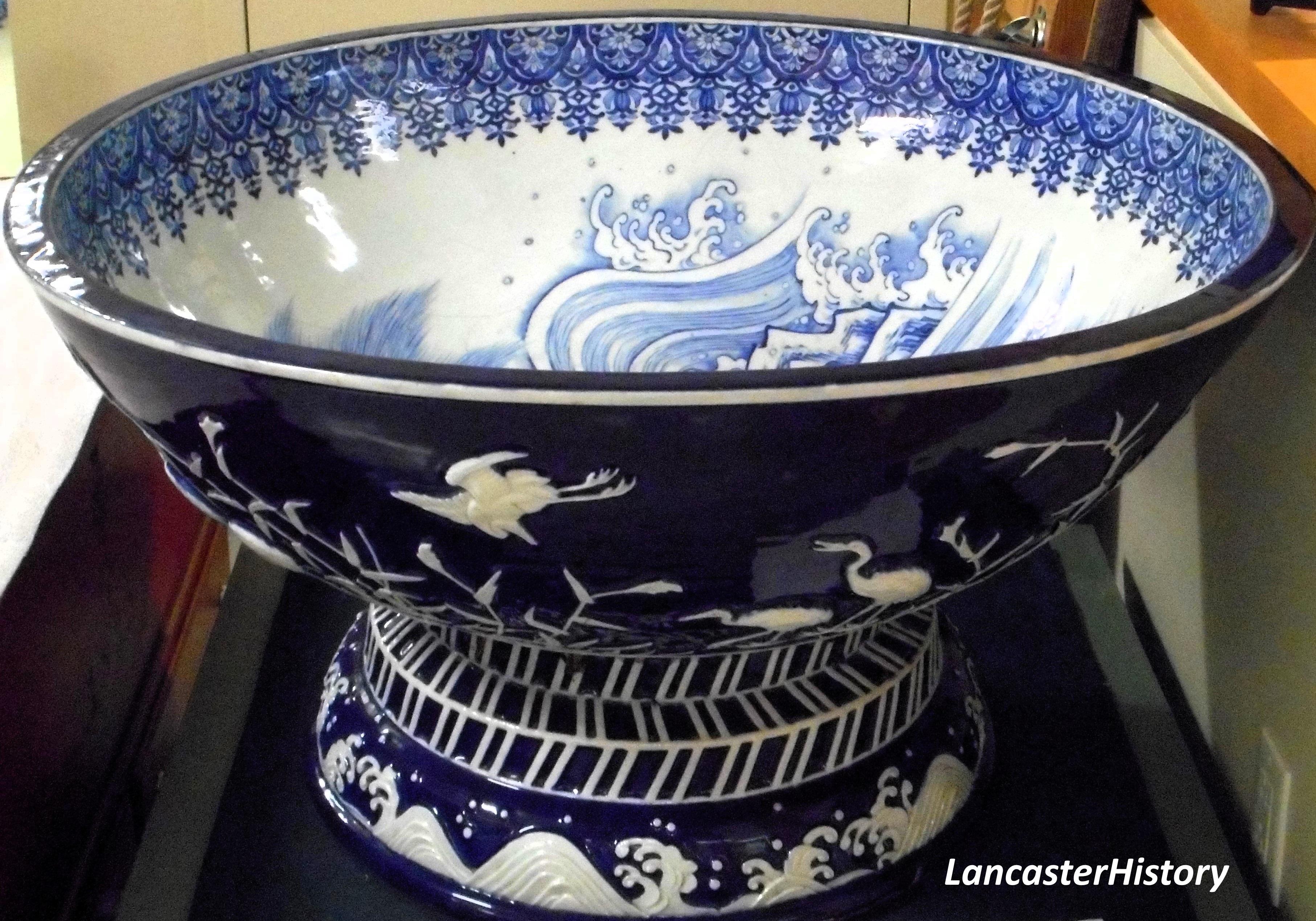 During their official visit to President Buchanan at the White House, the embassy provided Buchanan with a number of gifts – both personal and official –including the large Emperor’s Porcelain Bowl that can be viewed in the Decorative Arts Center on the lower level of the LancasterHistory museum. The bowl includes the Emperor’s personal symbol and indicates his deep regard for President Buchanan and desire for friendly relations between his country and the United States. The symbol of the turtle is popular in Japanese culture and history; a symbol of longevity and good fortune with a connection to Tokugawa leyasu, the founder of the powerful Tokugawa Shogunate that ruled Japan for 265 years from 1603 until the Meiji Restoration in 1868. The bowl was made by Jihei Kawamoto as one of two bowls for sake, Japanese rice wine.
