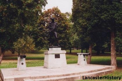 While Lancaster did not host a peace jubilee celebration in 1898, the General William S. McCaskey Camp, United Spanish War Veterans of Lancaster, did erect a memorial to those who served. Located in Buchanan Park, the memorial was dedicated on July 4, 1913, the fifteenth anniversary of the war. The plaque on the monument was cast from metal recovered from the USS Maine. The United States Navy donated the accompanying cannons. The statue of a soldier holding a rifle was added in 1931. The official name of the statue is “The Hiker.” American soldiers in the war often referred to themselves as Hikers, much like soldiers in World War I referred to themselves as doughboys and in World War II as G.I. Joes.